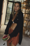 Cupro Ethereal Shorts in Kupferfarbe sind die wahre Essenz von Komfort und Lässigkeit. Ihr lockerer Schnitt umhüllt die Figur, während der elastische Bund dafür sorgt, dass sie immer perfekt passen. Praktische Elemente wie Seitentaschen, in denen Kleinigkeiten Platz finden, fehlen ebenfalls nicht. Hergestellt aus 55% Cupro und 45% Viskose, ist dies eine Kombination, die wie Seide aussieht, aber wie Baumwolle atmet. Cupro ist ein Stoff, der aus Baumwollfasern gewonnen wird, wodurch er leicht, luftig und besonders hautfreundlich ist. Die Falkenstickerei am Bein ist ein subtiler, aber charaktervoller Detail.
