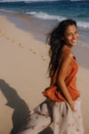 The Cupro Loose Top in Copper is the definition of freedom in a more elegant version. It has a loose fit, which will work great in the summer. At the front, a classic, round neckline, at the back beautifully exposed back. The material is a combination of 55% Cupro and 45% Viscose, a fabric with a delicate sheen, pleasant for the skin, breathable and perfect for warmer days. On the back, you will find a falcon embroidery - a small but significant detail. There is a flag label in the side seam. The top looks great in combination with ethereal shorts, creating a unique set. Made in Poland.