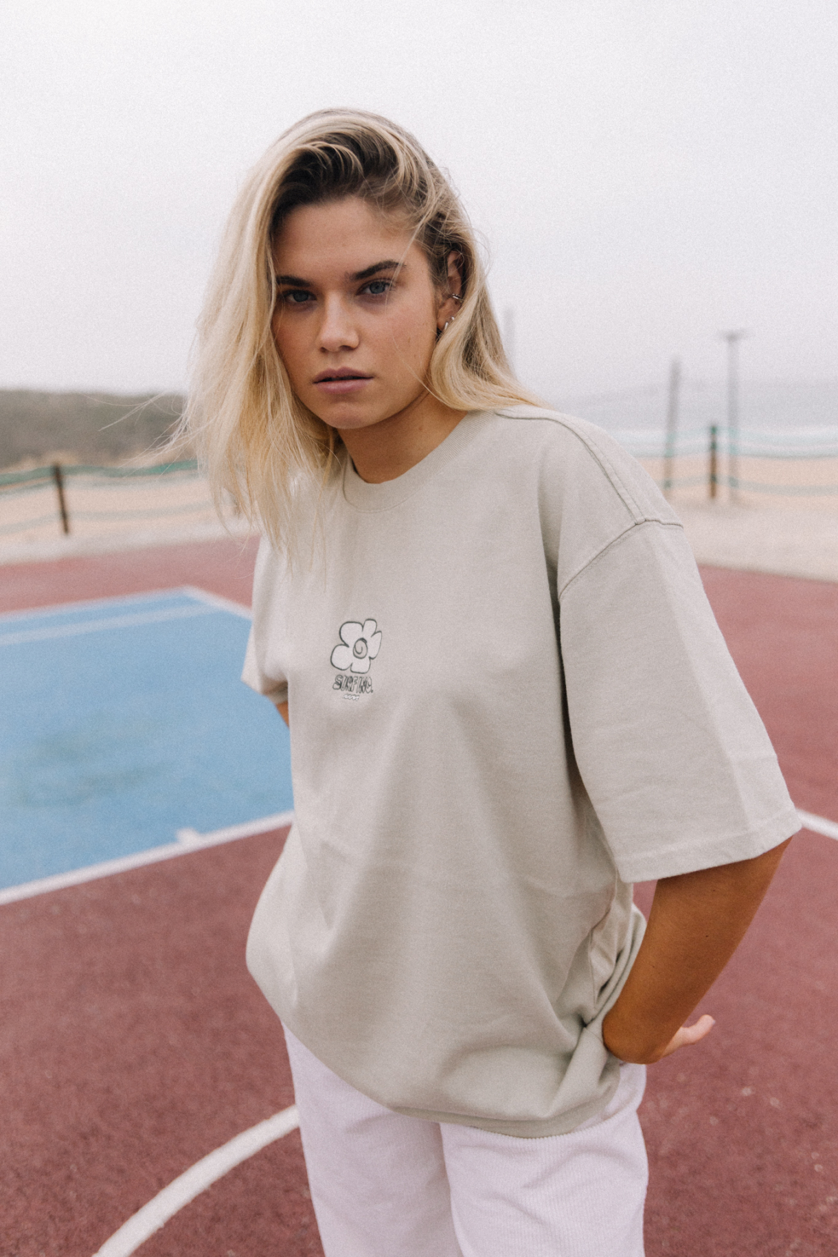 Blooming Tee Light Pistachio - Es una camiseta de gran tamaño con un corte de caja que combina una forma simple con un detalle contrastante. En el frente, un bordado colocado centralmente, y la parte trasera está adornada con un gráfico llamativo realizado con la técnica de decoloración, con un ligero efecto de desgaste. Cosida con 100% algodón orgánico premium de 270g y sometida a un lavado suavizante. El cuello está terminado con una banda de sudor de algodón, y la línea de los hombros y el cuello está acentuada con una costura delicada y contrastante en un tono más oscuro que el tejido. Etiqueta de bandera en la costura lateral. Hecho en Polonia.