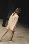 Zestawienie delikatnego różu i ciepłego odcienia żółtego nadaje całości świeżości – wszystko to podkreślone zostało kontrastowymi wstawkami przy rękawach. Całość domyka dodana naturalna metka z logo marki, wszyta w boczny szew.