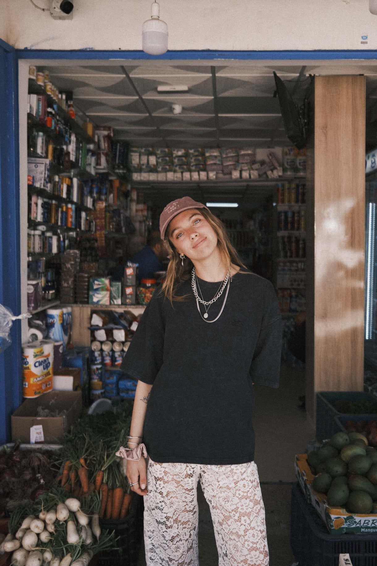 Robin ma 170 cm wzrostu i waży 55 kg. Ma na sobie rozmiar S.