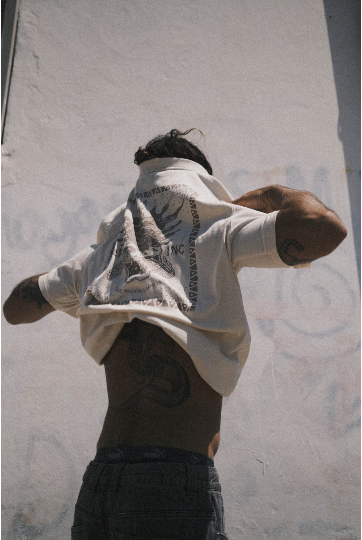 3rd Eye Skull Tee w kolorze Super Natural to oversize’owa koszulka z charakterem. Przód zdobi mała grafika “SRF INC.”, a tył hipnotyzuje nadrukiem “3rd Eye Skull” Uszyta ze 100% bawełny organicznej premium o podwyższonej gramaturze 230g. Zastosowanie wodnej techniki druku wtapia grafikę w dzianinę, dzięki czemu nadruk pozostaje trwały i estetyczny nawet po wielu praniach.